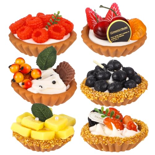 6 Pcs Artificial Fruit Tart Models Set, Realistic Simulated Fake Cake Dessert, Long-Lasting Vivid Multicolor Pastry Display for Home Decor, Kitchen, Photography Props