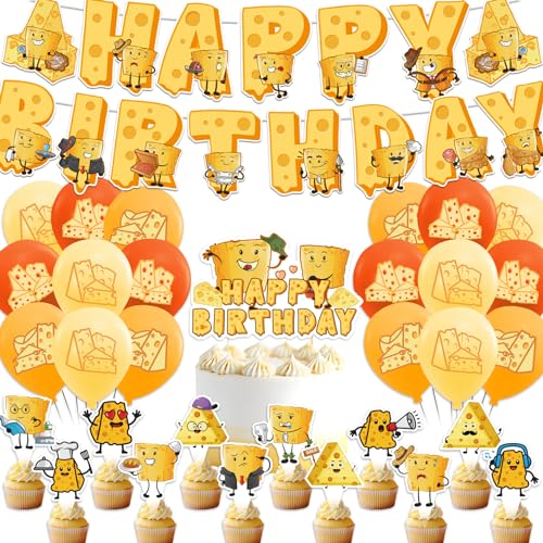 Cheese Party Supplies - Cartoon Birthday Decorations Including Happy Banner, Cake Topper, Cupcake Toppers, Balloons for Baby Shower