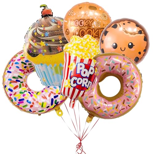 6Pcs Snack Balloons,Chocolate,Cookie,Popcorn,cake Balloons for Themed Parties Birthday Celebration Decoration,Snack Birthday theme Party Supplies