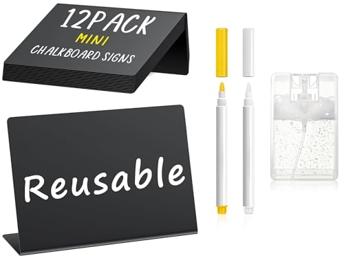 PigPotParty 12 Pcs Food Labels for Party Buffet, 4"x3" Mini Chalkboard Signs for Food Display, Table Place Cards - Name Tags- Small Chalk Board Signs, w/Cleaning Spray & 2 Markers