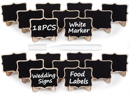 Herda 18 PCS Mini Chalkboard Signs with Easel Stand, Wooden Blackboard Labels for Wedding Celebration, Name/Place Cards, Food Labels for Party Buffet, Reusable Signs/Message Boards/Table Numbers etc.