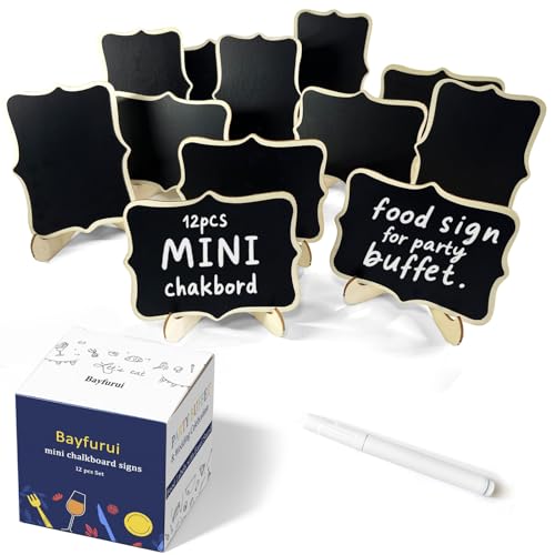 12 Pcs Mini Chalkboard Signs, Small Chalkboard Labels with Easel Stand, Wooden Blackboard for Table Numbers, Food Signs, Wedding Signs, Place Cards and Event Decoration, with 1 Liquid Chalk