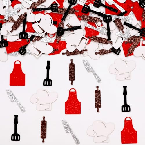 Sursurprise 200Pcs Chef Theme Confetti, Cooking Kitchenware Table Scatters for Birthday Baby Shower Cook Decorations, Baking BBQ Cooker Kitchen Party Decor Supplies