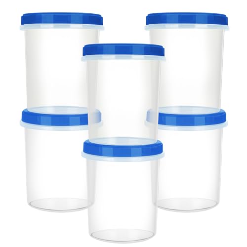 Heavy Duty Airtight Plastic Containers with Twist Top Lids, Stackable Freezer Containers for Lunch, Salad, Soup, Leftover, Ice Cream, BPA Free [6 Pack-32 oz]