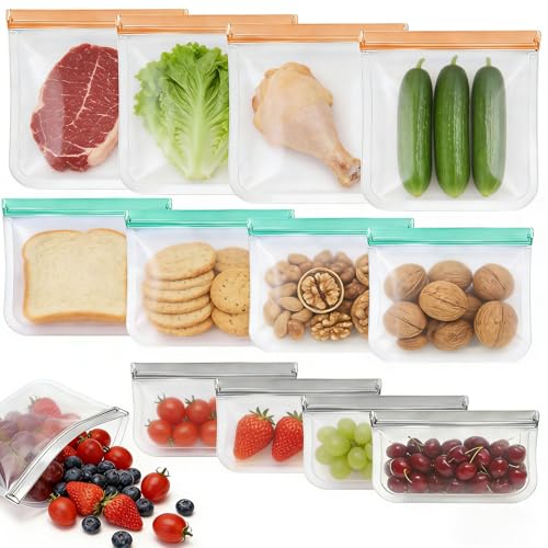 10 Pack Dishwasher Safe Reusable PEVA Food Storage Bags, Leak proof Reusable Freezer Bags for Food Storage Home Organization Traval & Make-up BPA FREE for Food Storage Home BPA FREE for Salad Fruit