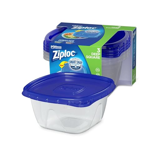 Ziploc Storage Containers with SmartSnap Technology, Deep Square, 1.25Q, 3 Pack