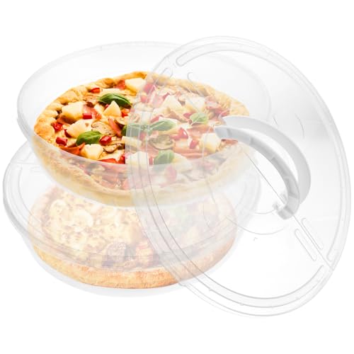 2 Pcs Clear Pie Containers With Lids and Handle, Round Plastic Pie Carrier Reusable Leftover Pizza Storage Container Box Double-Layer Food Tray with Cover for Cake Cookies Cheesecake Pastry