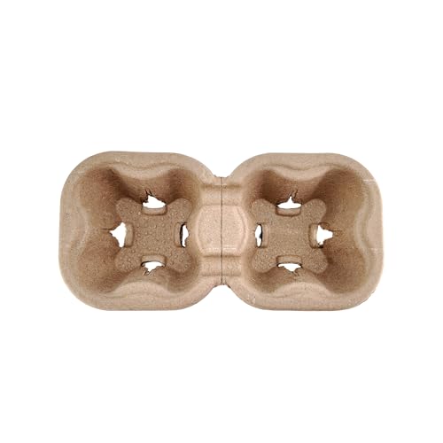 200 Pack 2-Cup Pulp Fiber Drink Carrier Trays for 8–24 oz Cups, 8.66" x 4.33" x 1.65", Eco-Friendly Recycled Cup Holders for Coffee to-Go, Takeout, Cafés, Drive-Thru, Office & Parties