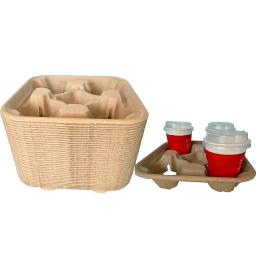 Disposable 4 Cup Drink Carrier Trays, Biodegradable Pulp Fiber Coffee Carry Tray, Compostable No Spill Drink Cup Holder for Hot Cold Beverages, Car, Food Delivery, Restaurants and Cafes Shop (36 Pack)