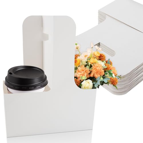 MAQIHAN 2 Cup Drink Carrier with Handle - 12Pcs Disposable Paper Cardboard Coffee Cup Holder Portable Drink Caddy Cup Carriers to go Cup Holder Food Delivery Accessories for Hot/Cold Drinks (White)