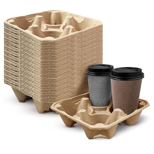 [25 Count]HAKOWARE 12-24oz 4 Cup Disposable Drink Carrier Trays, Compostable Pulp Fiber Paperboard Cup Holder for Takeout Drinks, Heavy Duty Kraft to Go Coffee Cup Holder, Drink Carriers for Delivery