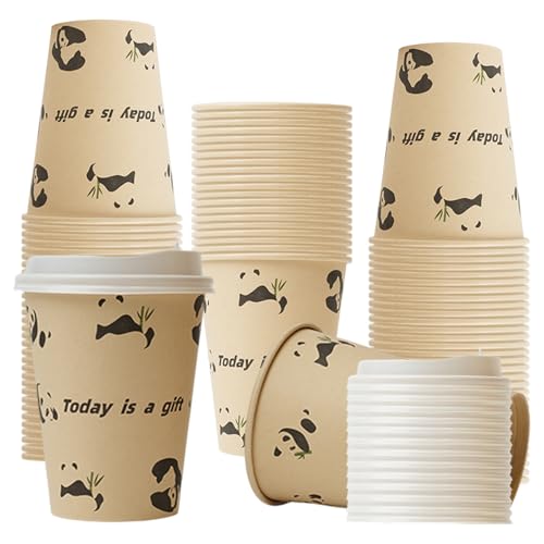 12 OZ 25 Pack Disposable Cups Paper Coffee Cups with Lids, Disposable Paper Cups for Cold/Hot Drinks, Eco-friendly Leak-Proof To Go Drinking Cups for Office Party Home Picnic & Travel (Panda)