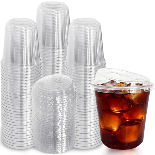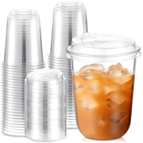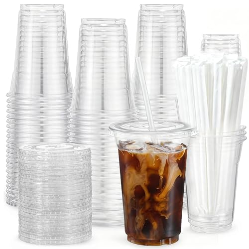EUHOMY 100 Pack 16oz Clear Plastic Cups with Lids and Straws, Bulk Disposable Coffee Cups, BPA-Free Food Safe Takeaway Cups for Iced Coffee, Smoothies & Cold Drinks