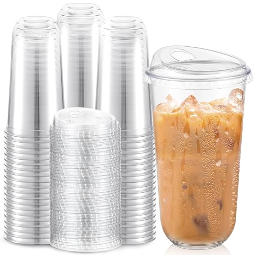Baderke 50 Sets Clear Plastic Cups with Lids, Iced Coffee Cups with lids,Disposable Plastic Smoothie Cup for Cold Drinks, Sip Lid(Clear,16 oz)