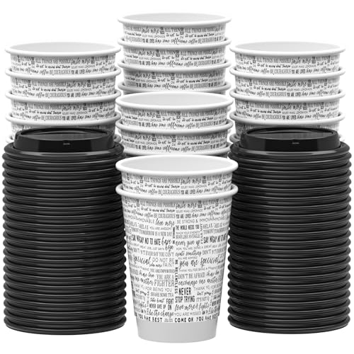 JOLLY PARTY [100 Pack] 12 oz Paper Coffee Cups, Disposable Paper Coffee Cup with Lids, Hot/Cold Beverage Drinking Cup for Water, Juice or Tea, Suitable for Home, Shops and Cafes