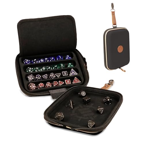 ENHANCE Designer Edition Dice Tray - Stylish Dice Case and Dice Holder for 28+ Dice with EVA Shell Protection - Dice Rolling Tray with Removable Dice Holder for DnD, Other RPG Games (Black)