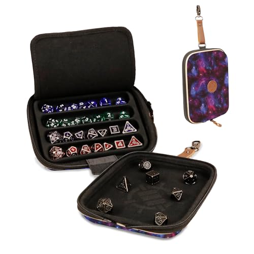ENHANCE Designer Edition Dice Tray - Stylish Dice Case and Dice Holder for 28+ Dice with EVA Shell Protection - Dice Rolling Tray with Removable Dice Holder for DnD, Other RPG Games (Galaxy)