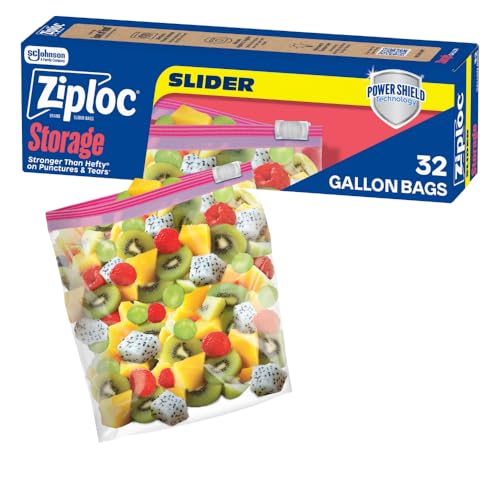 Ziploc Gallon Food Storage Slider Bags, Power Shield Technology for More Durability, 32 Count (Packaging May Vary)