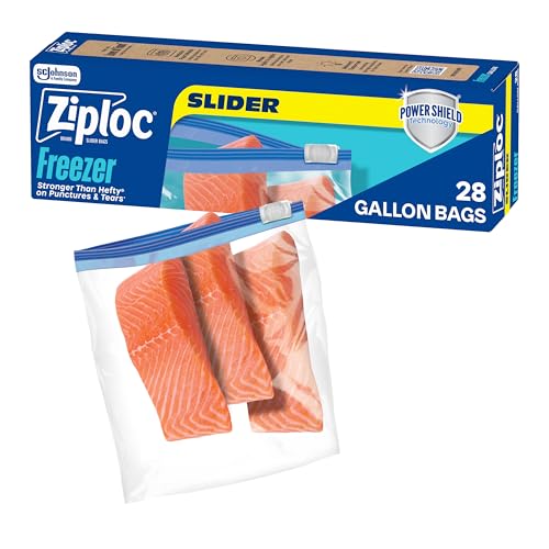 Ziploc Gallon Food Storage Freezer Slider Bags, Durable, 28 Count