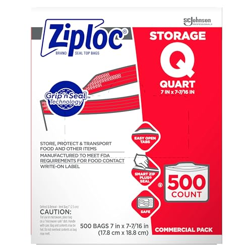 SC Johnson Professional, Ziploc Storage Bags, For Food Organization and Storage, Double Zipper Seal, Easy-Open Tabs Quart, 500 Count