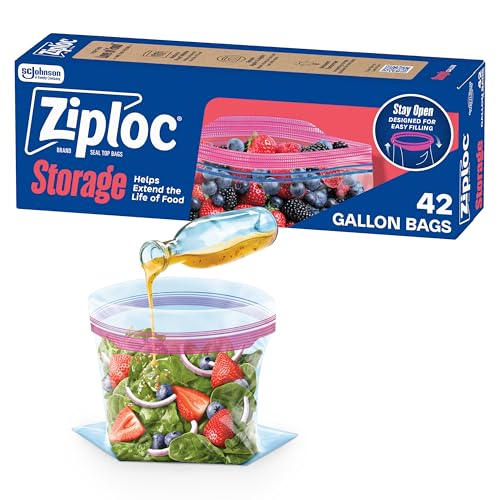 Ziploc Gallon Food Storage Bags, Stand-Up Bottom, Easy to Fill, 42 Count