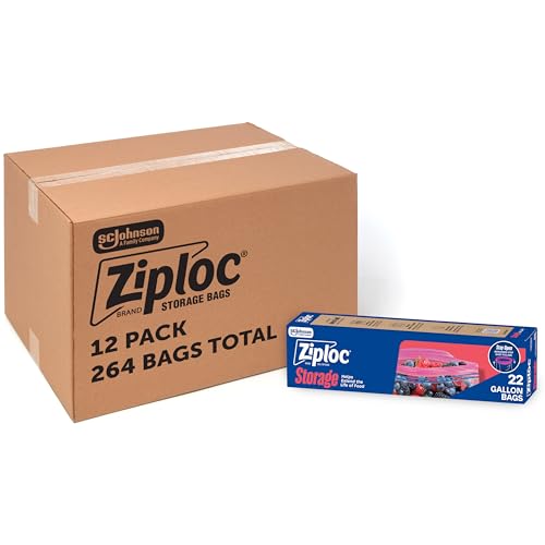 Ziploc Gallon Food Storage Bags, Bulk Storage Bags for Meal Prep, Stand-Up Bottom, Easy to Fill, 264 Count