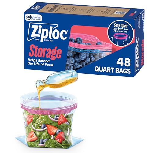 Ziploc Quart Food Storage Bags, Stay Open Design with Stand-Up Bottom, Easy to Fill, 48 Count