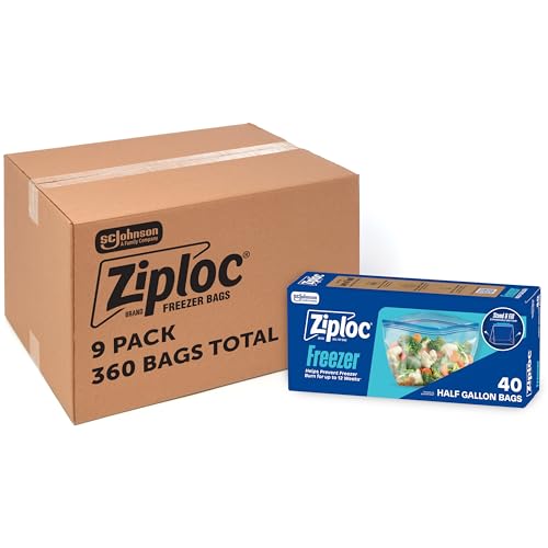 Ziploc Half Gallon Food Storage Freezer Bags, Bulk Freezer Bags for Meal Prep, Easy Open and Close, 360 Count