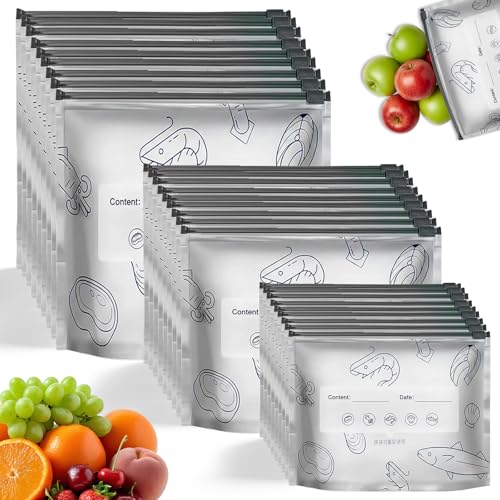 30pcs Reusable Aluminum Foil Sealable Storage Bags, Vacuum Seal Storage Bag Stand Up Freezer Bags with Label&Zip Lock for Vegetable Fruit Meat