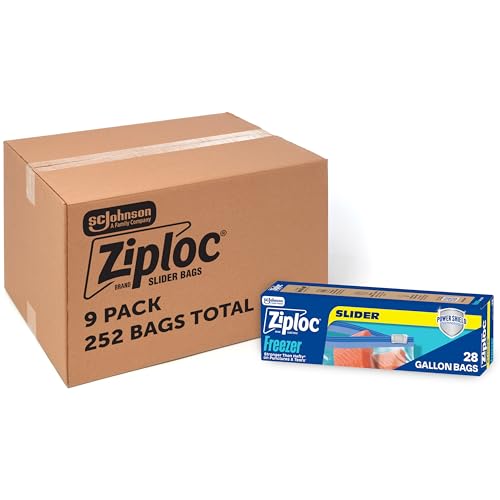 Ziploc Gallon Food Storage Freezer Slider Bags, Bulk Freezer Bags for Meal Prep, Durable, 252 Count