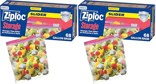 Ziploc Gallon Food Storage Slider Bags, Power Shield Technology for More Durability, 68 Count (Pack of 2)