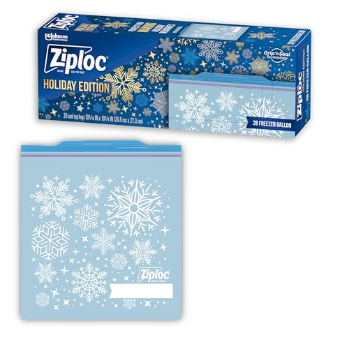 Ziploc Gallon Food Storage Freezer Bags, Grip 'n Seal Technology for Easier Grip, Open, and Close, 28 Count, Holiday Designs