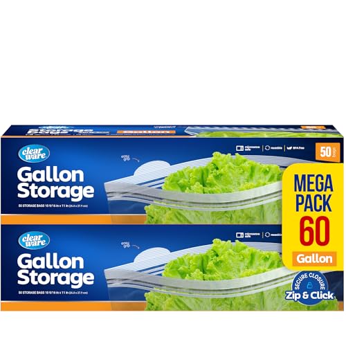 Gallon Storage Bags, Double Zipper Seal - 100 Count, Reusable Thick Food Plastic Storage Bags - Microwave-Safe, Zero BPA - Resealable Containers for Lunch, Snacks, Meals - 2 Boxes