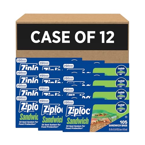 Ziploc Sandwich and Snack Bags, Easy Open and Close, Plastic Food Storage Bags, 105 Bags Total (Packaging May Vary), Pack of 12