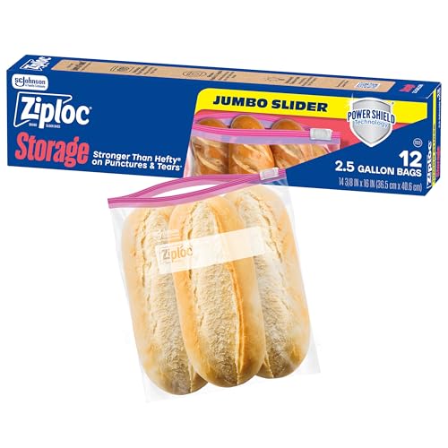 Ziploc 2.5 Gallon Jumbo Storage Slider Bag, Power Shield Technology, 12 count