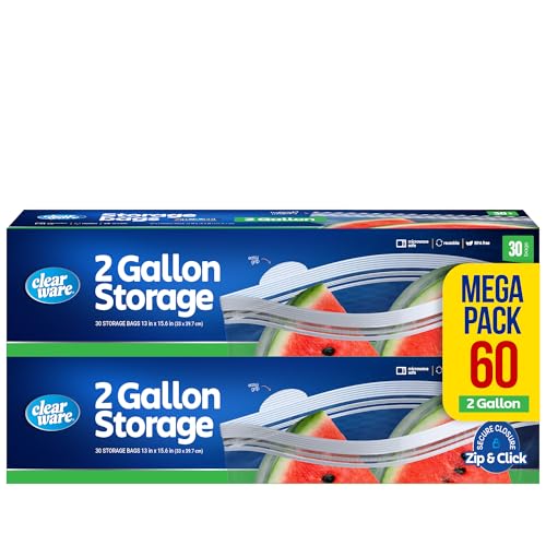 2 Gallon Storage Bags, Double Zipper Seal - 60 Count, Resealable Thick Plastic Food Storage Bags - Microwave-Safe, Zero BPA - Resealable Containers for Lunch, Snacks, Meals - 2 Boxes