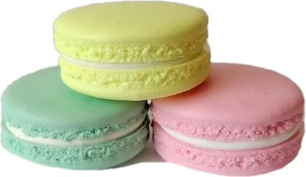 Fake Macarons 2" Set Faux Macaron Aqua, Pink and Yellow Artificial Food Cookie Prop