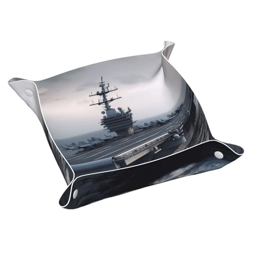 PU Leather Valet Tray,Elegant Desktop Storage Organizer Aircraft Carrier Decorative Jewelry Tray, Portable Catchall Travel Storage Dish Plate for Key, Wallet, Watch, Coin