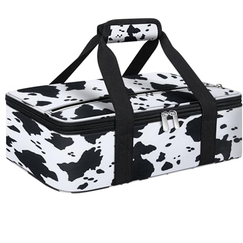 Insulated Casserole Carrier, Portable Casserole Carrier for Hot or Cold Food Lunch Tote Warmer or Cooler Bag, Lasagna Lunch Bag for Potluck Parties- Fits 9" x 13" Baking Dish-Cow Pattern