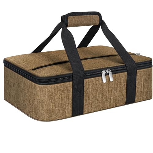 Insulated Casserole Carrier, Portable Casserole Carrier for Hot or Cold Food Lunch Tote Warmer or Cooler Bag, Lasagna Lunch Bag for Potluck Parties- Fits 9" x 13" Baking Dish-Coffee