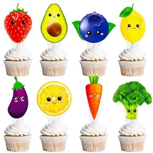 48Pcs Vegetable and Fruit Cupckae Toppers Farmer Market Birthday Party Decoration Funny Fruit Vegetable Theme Cupcake Picks for Summer Garden Party Baby Shower Supplies