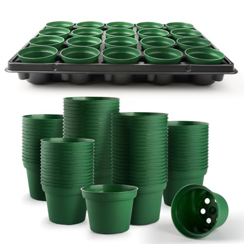 3 Inch Nursery Pots 100 Pcs with 5 Pcs 20 Cell Nursery Pot Trays, 5 Sets Seed Starting Kit for Seedlings, Propagation and Home Gardening, Sturdy Green Seeds Starter Pot Tray Germination Set