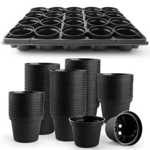 3 Inch Plastic Plant Pots 100 Pcs with 5 Pcs 20 Cell Seed Starter Trays, Thick Black Small Nursery Pots and Propagation Shuttle Trays for Seed Starting, Plant Propagation Starter Kit 5 Sets