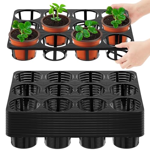 10 Pcs 12 Cell Nursery Planter Pots Trays 16.73" x 12.6" Plastic Pots Plant Tray for 4 Inch Round Nursery Planter Seedling Tray Flowerpot Carrier Transporting