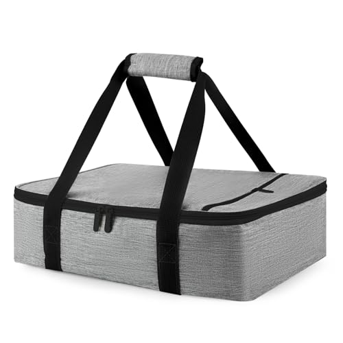Bodaon Casserole Carriers for Hot or Cold Food, Fits 11"x15"Baking Dish, Bottom Support, Cationic fabric, Portable Warmer for Travel, Keep Warm Food Containers,Keeps Food Hot for Hours, Grey