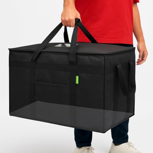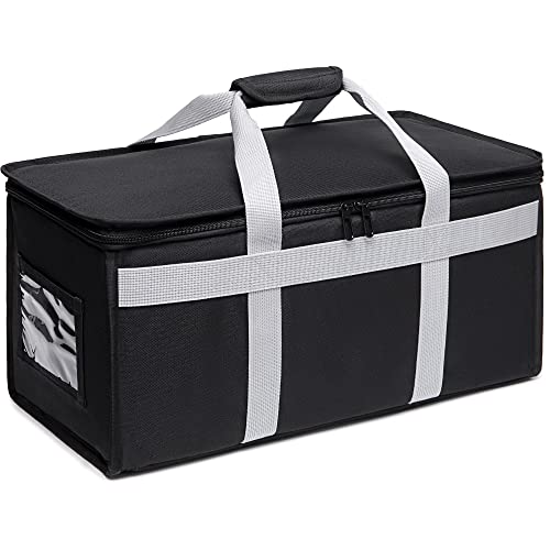 Bodaon Insulated Food Delivery Bag with Included Baseboard, Heavy-Duty Thermal XXXL Cold/Hot Lunch Warmer for Delivery Drivers, Reusable Grocery Carrier for Pizza, Drinks, Camping, Commercial, Black
