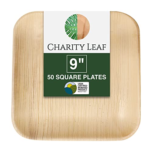 Charity Leaf Disposable Palm Leaf 9" Square Plates (50 pieces) Bamboo Like Serving Platters, Disposable Boards, Eco-Friendly Dinnerware For Weddings, Catering, Events