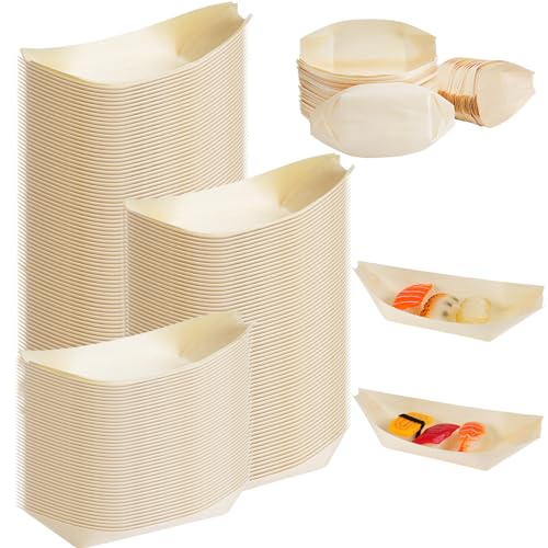 Sliner 300 Pcs Disposable Wood Boat Plates Dishes Food Boats Disposable Wooden Appetizer Sushi Plates Bulk for Catering and Home Use(7 Inch)
