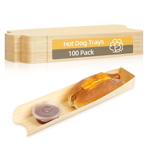 100 Pack Hot Dog Trays Wooden Hot Dog Containers Disposable Open-Design Hot Dog Holders Disposable Food Tray for Sandwich Hamburger Hot Dog Boats for Hot Dog Cart Supplies I 11.8"x1.98"x1.3"