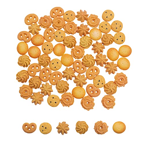 X Hot Popcorn 60Pcs Fake Cookies Mini Fake Cookies Artificial Pastries Food Fake Biscuits Model for DIY Craft Home Kitchen Decor